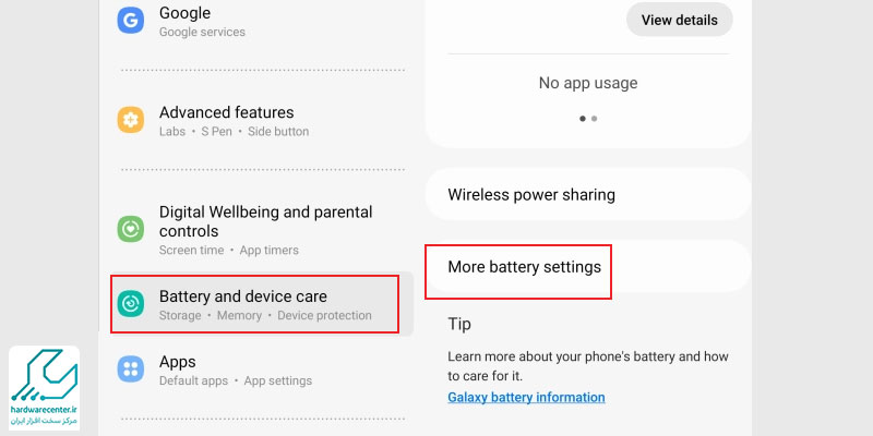 گاهی مشکل غیر فعال شدن فست شارژ گوشی سامسونگ فقط یک گزینه خاموششده است! اگر فست شارژ کار نمیکند، به مسیر Settings > Battery and Device Care > Battery > More Battery Settings بروید و مطمئن شوید گزینه Fast Charging فعال است. روشن کردن این گزینه معمولا مشکل را در چند ثانیه حل میکند.